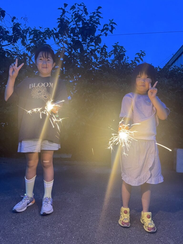 夜は花火をしたり