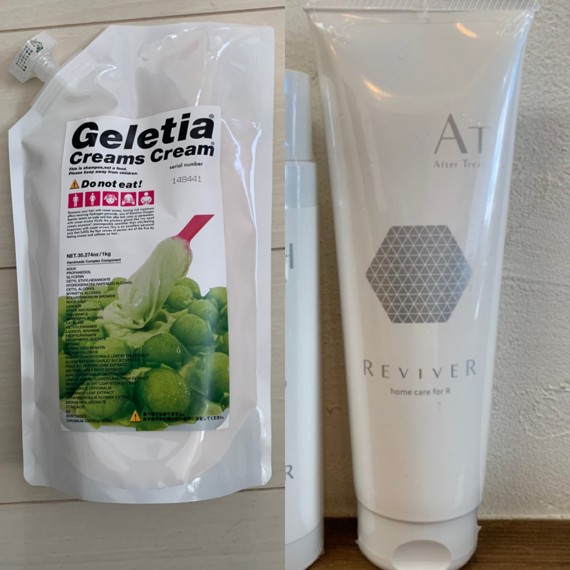 カラーなどで使う栄養シリーズのアールのトリートメントとクリームズクリームを混ぜるという裏技です