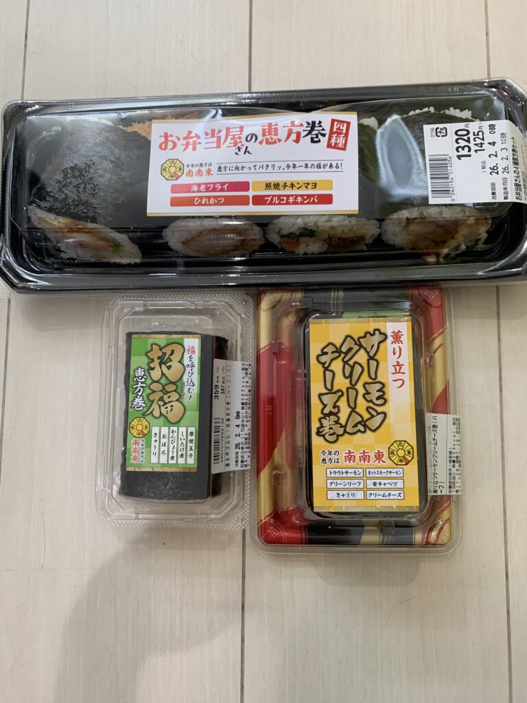 だから節分でやる恵方巻きを食べるとか豆まきとかも軽くやりました